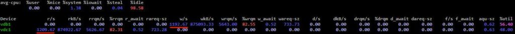 # iostat -x /dev/vdb1 /dev/vdc1 1